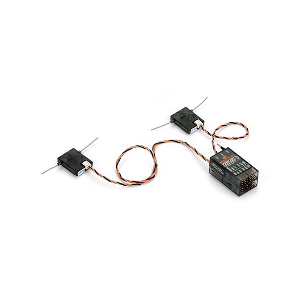 The Spektrum™ AR9020 is a 9-channel DSMX® receiver that gives you the option of adding extra channels simply by plugging a Spektrum X-Plus8 channel expander into its SRXL port. This makes it ideal for scale modelers who like to push realism to the extreme with working accessories and lights, in addition to regular control functions. The AR9020 also includes two small, remote receivers that let you take advantage of patented Spektrum MultiLink™ technology. The remote receivers allow the AR9020 to “see around” conductive materials in the model and maintain a solid signal in any attitude.