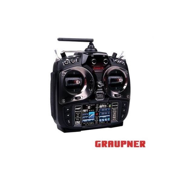 Graupner/SJ mz-24 HoTT 2.4GHz 12 Channel transmitter is designed with Graupner/SJ's unique telemetry technology that support Bi-directional data transmission gives user the real-time information. The use of up to 75 frequency hopping channels ensures extreme operating reliability and immunity to external interference. mz-24 has 30 model memories and it is suitable for any aircraft, Aditionally, with up to 12 available channels, built-in telemetry with data logging capabilities and 3.5" large TFT LCD with specialized touch pannel, mz-24 is the obvious choice for anyone who needs a high quality 12 channel radio.