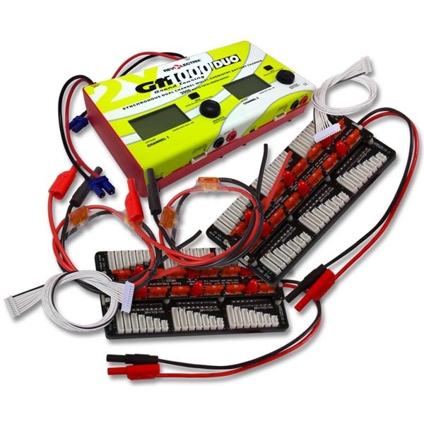 The GT1000DUO Charger directly supports balance charge of any 1s-6s LiPo or LiHV battery pack equipped with a JST XH balance connector without the use of an adapter. It also directly supports the Revolectrix MPA and SPA Smart Parallel Adapters; the safest parallel charging solutions on the market. Look for the MPA Combo in the REVO webstores.
