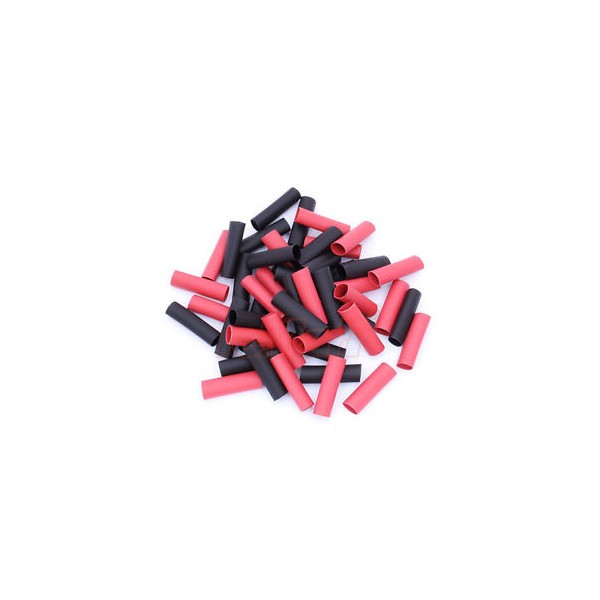 50 red and 50 Black 4.5mm od approx, 15mm length pre-cut heat shrink tubing. Ideal for connectors. Ideal for deans and XT 60's