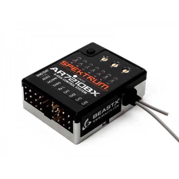 The AR7210BX brings together the security of a DSMX® receiver with a BeastX® flybarless system in a single, lightweight unit. At the center of its capabilities is a high-resolution, 6-axis MEMS stabilization system that delivers flawless response in all types of conditions. You don’t need a separate programming interface either. All setup and adjustment can be done with a DSM2® or DMSX® transmitter.